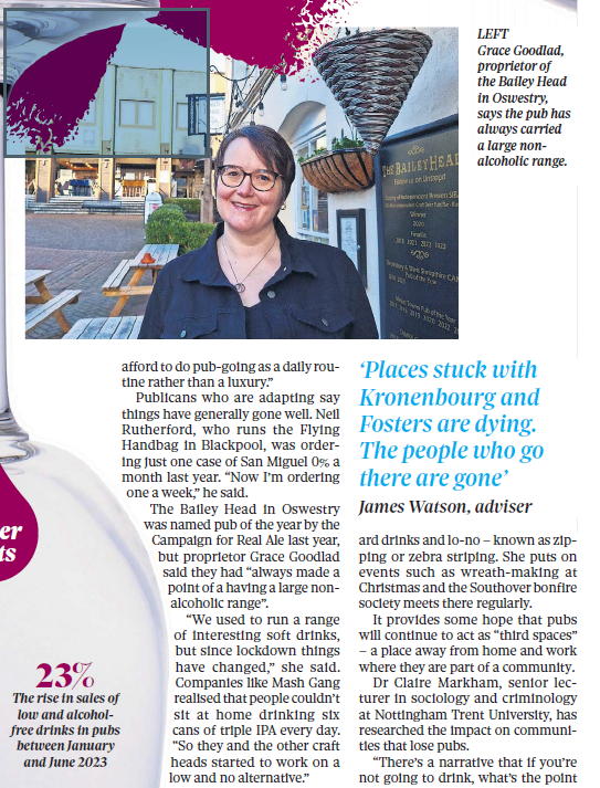 Grace is quoted, and pictured, on page 3 of today’s Observer in a full page article about low and no alcohol drink options.