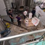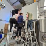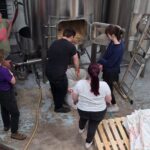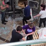 So after a night out in Manchester on Sunday Grace, Duncan, Carys, Emma and Rhys headed to the brewery to brew the beer. We joined Simon, Jonny and Eilidh from the Big Trip team.