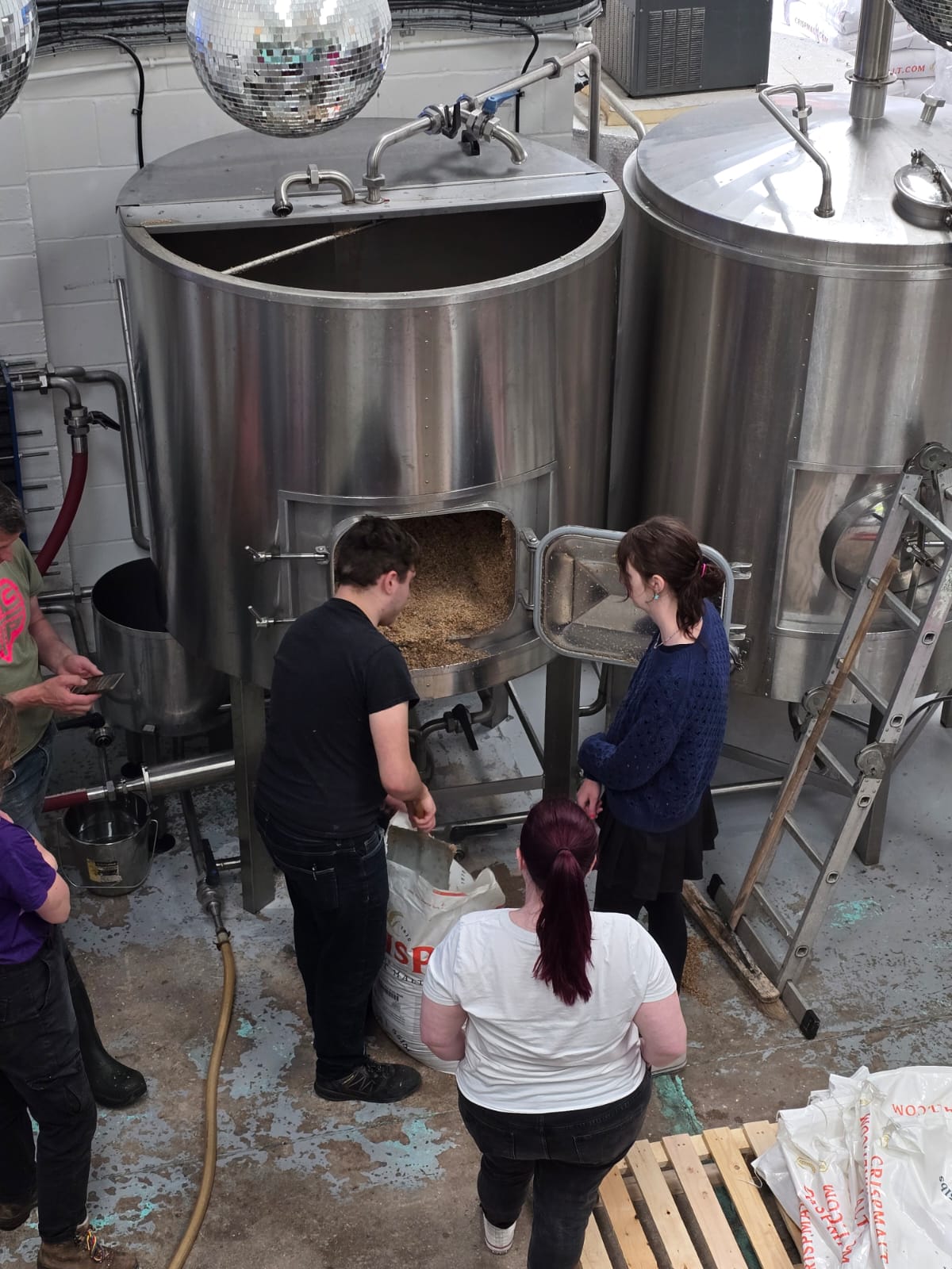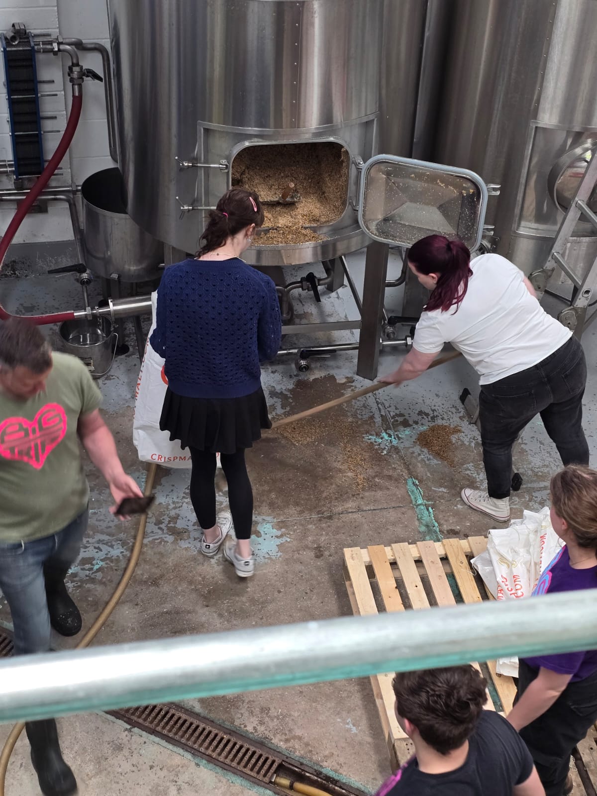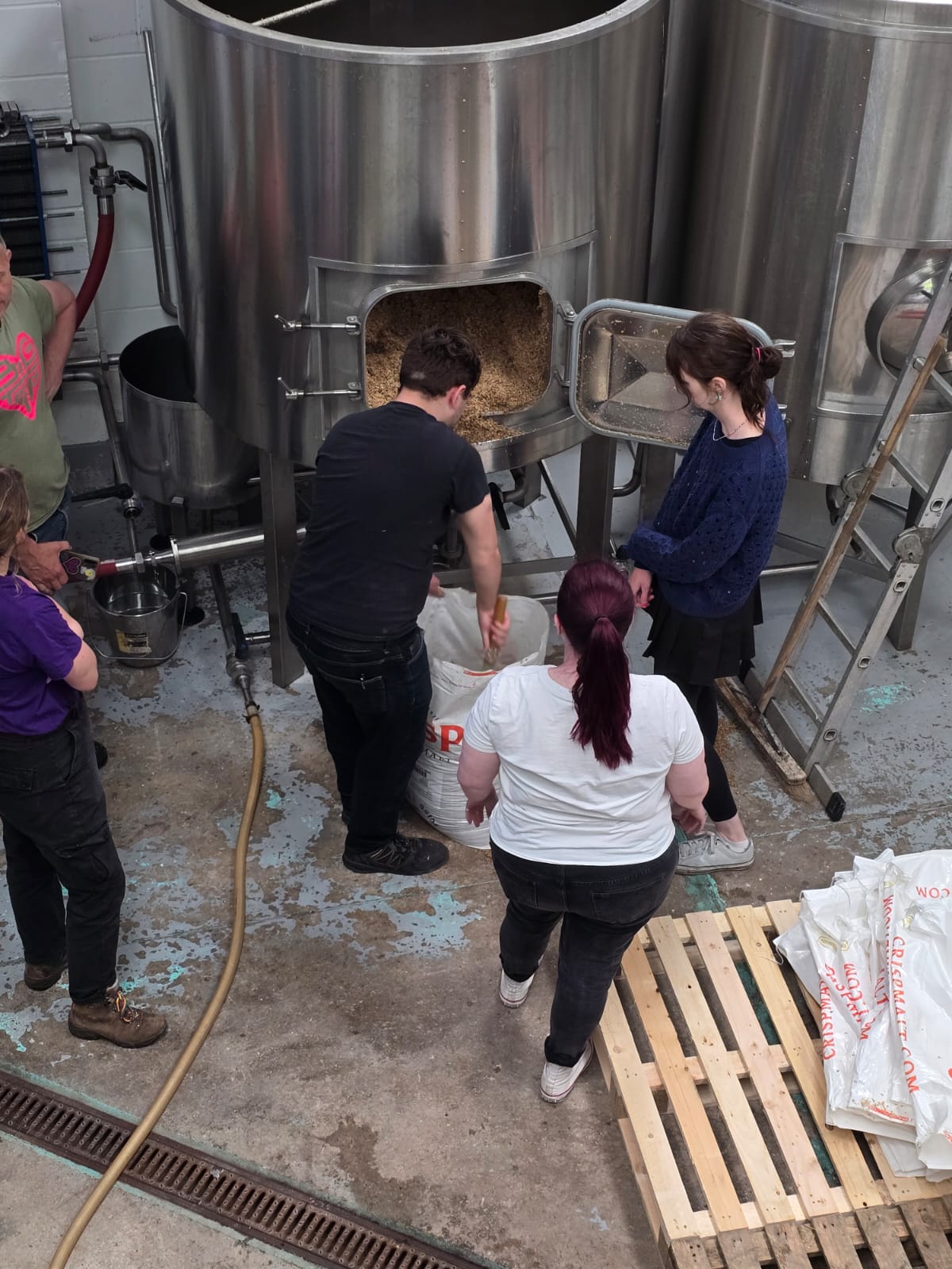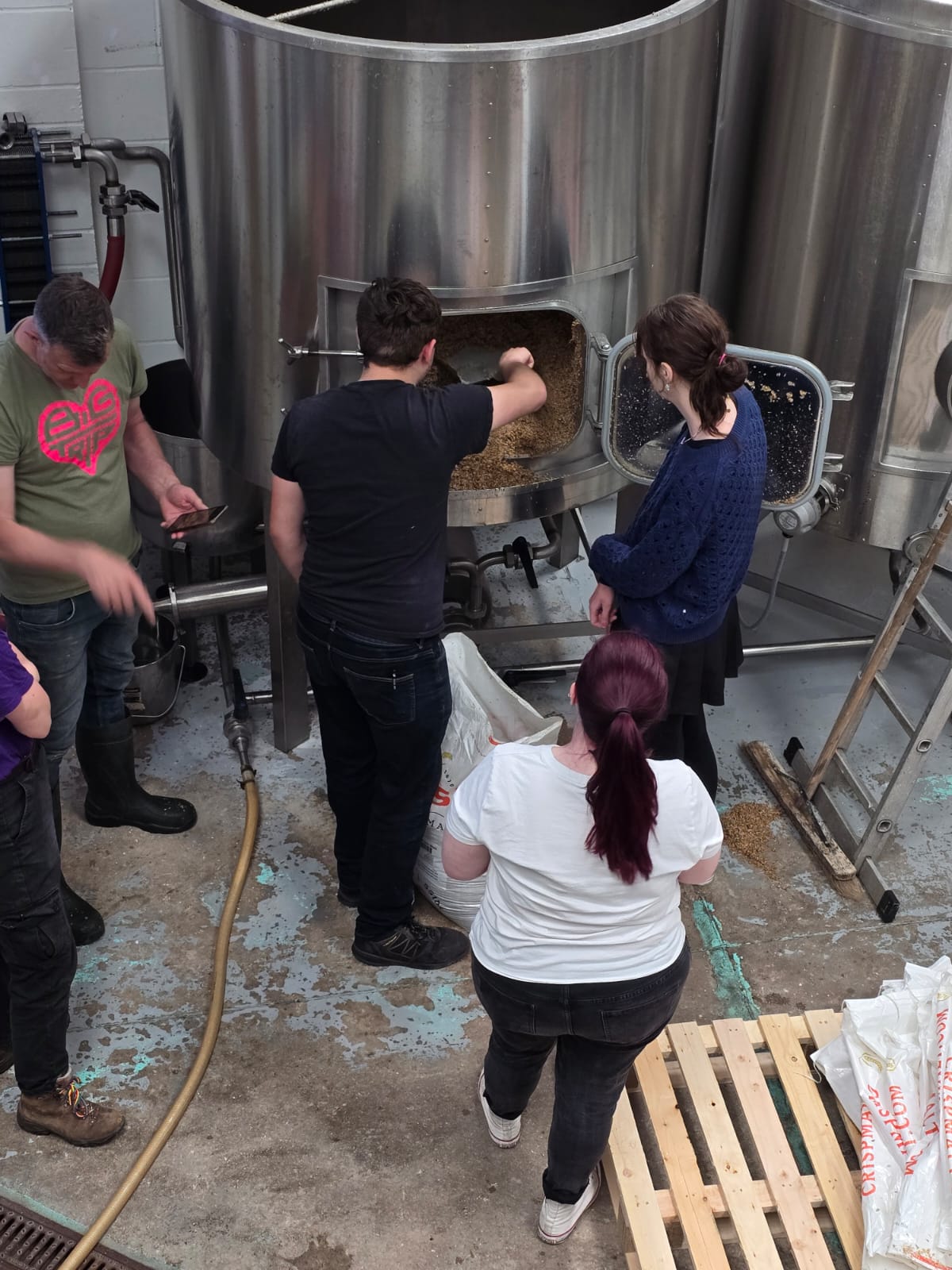 So after a night out in Manchester on Sunday Grace, Duncan, Carys, Emma and Rhys headed to the brewery to brew the beer. We joined Simon, Jonny and Eilidh from the Big Trip team.