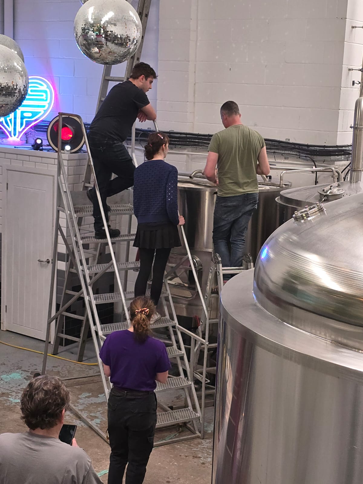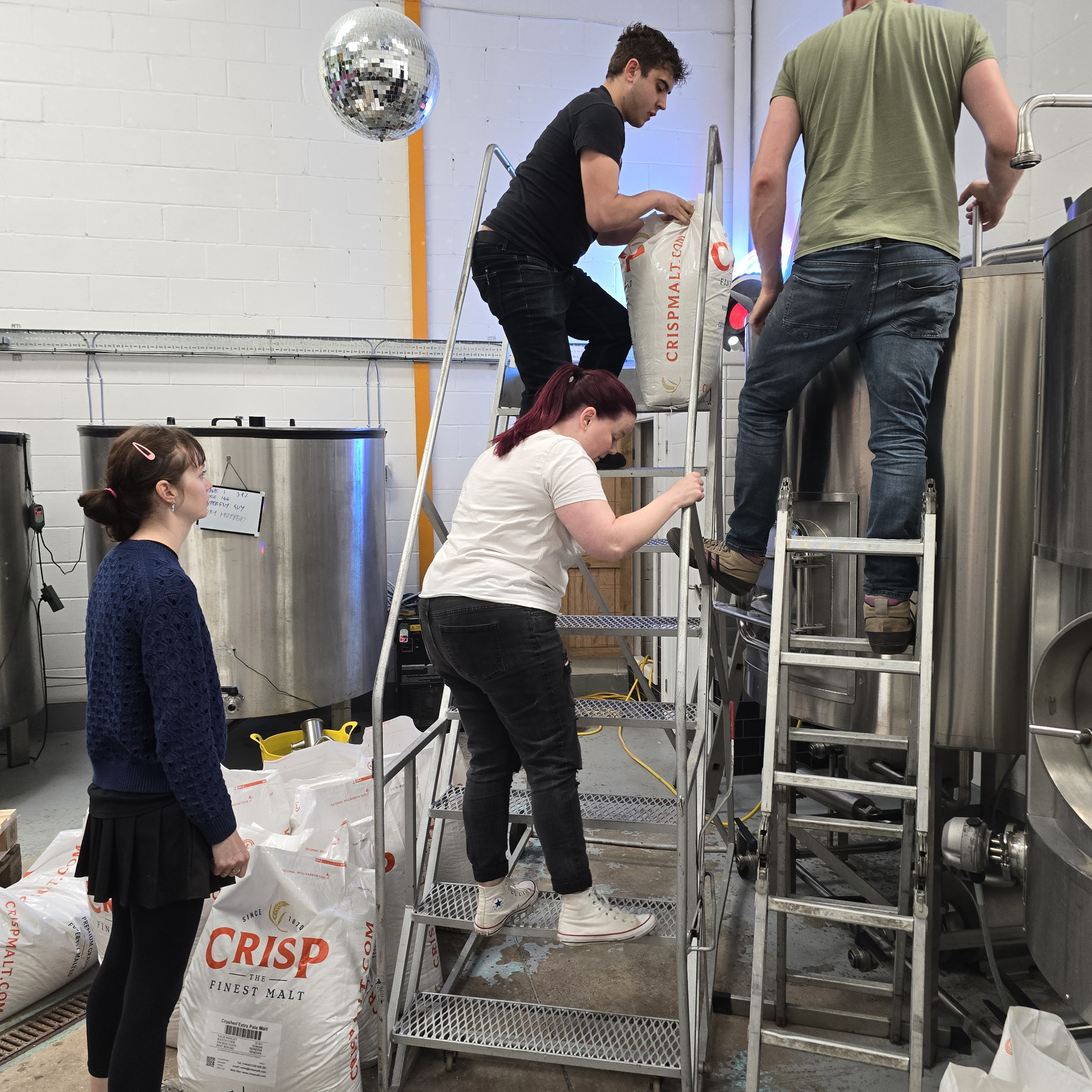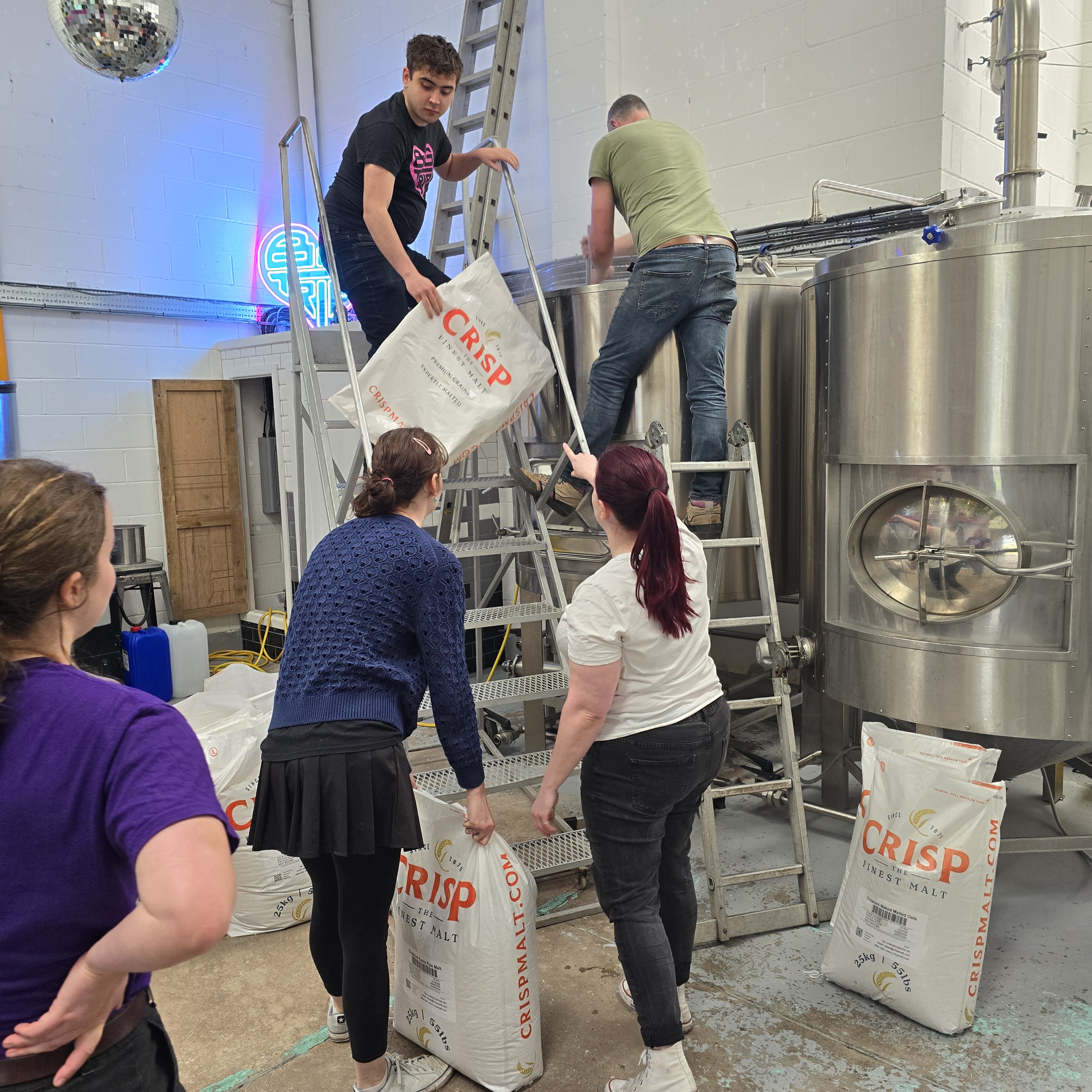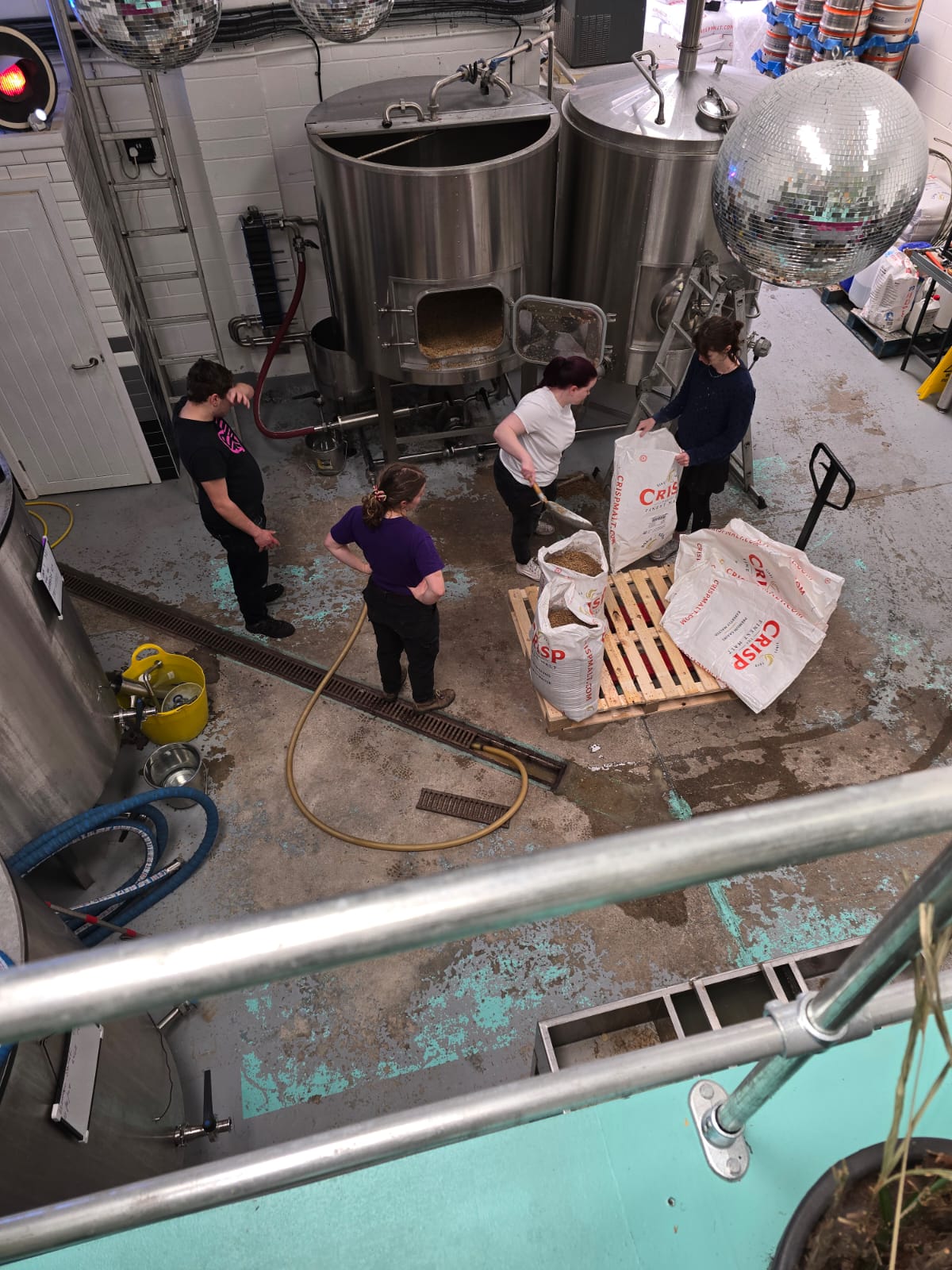 So after a night out in Manchester on Sunday Grace, Duncan, Carys, Emma and Rhys headed to the brewery to brew the beer. We joined Simon, Jonny and Eilidh from the Big Trip team.