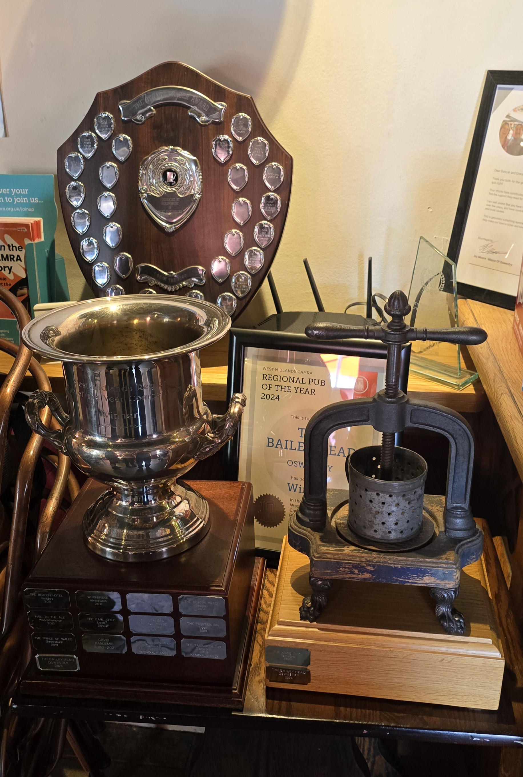 The Bailey Head has been presented with its trophies for CAMRA West Midlands Regional Pub of the Year and West Midlands Regional Cider Pub of the Year.