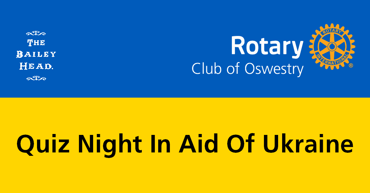Quiz Night in Aid of fundraising by the Rotary Club of Oswestry for relief in Ukraine. Thursday 24 March, 7.30pm for 8pm start. No table bookings, except in the case … Read moreQuiz in Aid of Rotary Club of Oswestry Ukraine Relief Fundraising 24 March 7.30pm