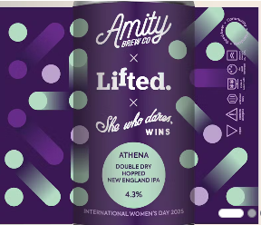 Amity “Athena” DDH NEPA in Keg 4.3% Brewed in collaboration with Lifted Ventures and She Who Dares Wins, Athena is a tribute to the powerful women shaping the world for International Women’s Day 2025. Lifted Ventures empowers female founders with the investment and resources to fuel the UK economy, while She Who Dares Wins amplifies the voices of incredible women via a podcast and community, offering a platform to share their journeys. challenges and triumphs. This Double Dry Hopped IPA features New Zealand hops, Nelson and Nectaron, creating a juicy, hazy, and fruity profile with vibrant notes of grapefruit and citrus. A perfect balance of strength, wisdom, and craft-just like Athena herself.