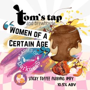 “Women of a Certain Age” is a 10.5% Imperial Sticky Toffee Pudding Stout, in Keykeg. What goes with Sticky Toffee Pudding? “Shame Must Change Sides” is a 6.1% Vanilla Custard Stout in Cask.